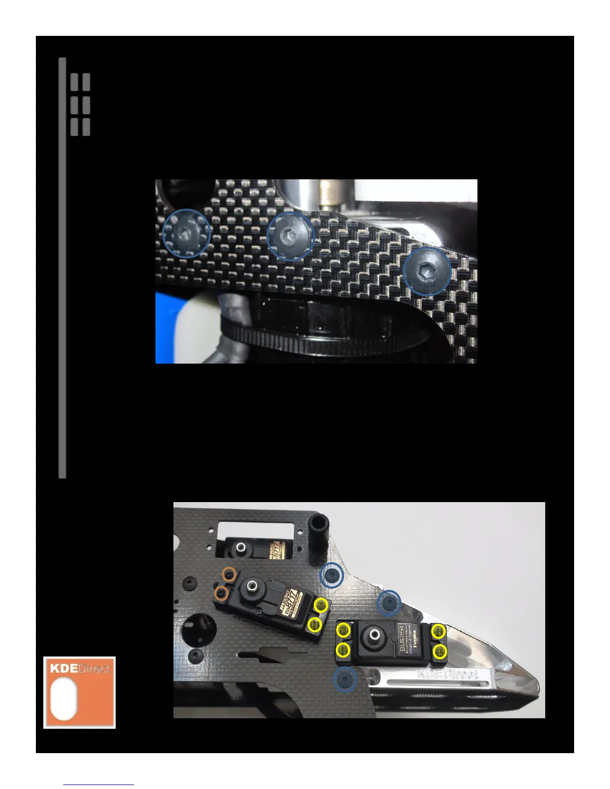 Install the servos to the frame components using the M2.5 x 0.45 x 14 mm Button Head