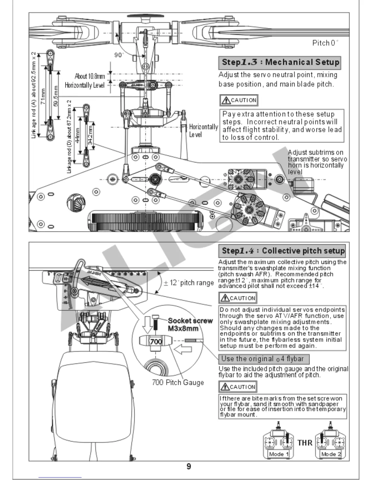 Align TREX 700 - Mechanical Setup Adjustments; Collective Pitch Setup Process