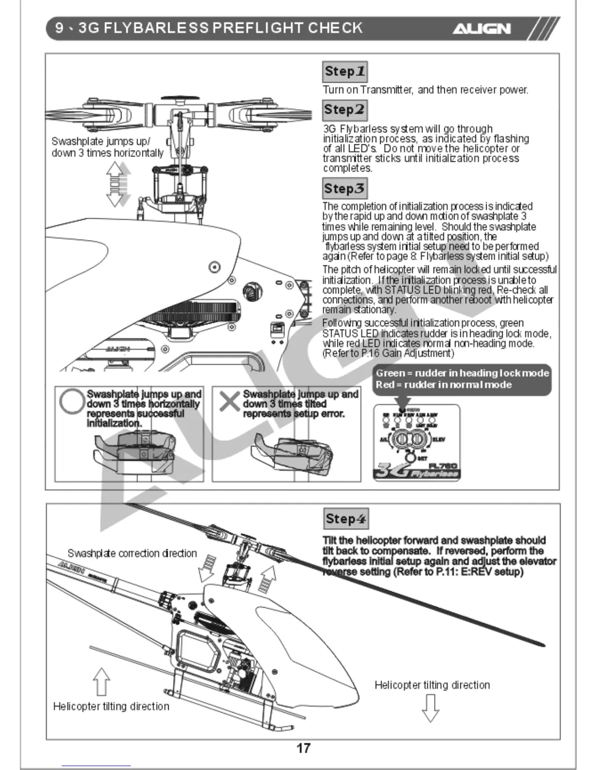 Align TREX 700 - Power On and Initialization Sequence; Initialization Completion Verification; Elevator Compensation Check