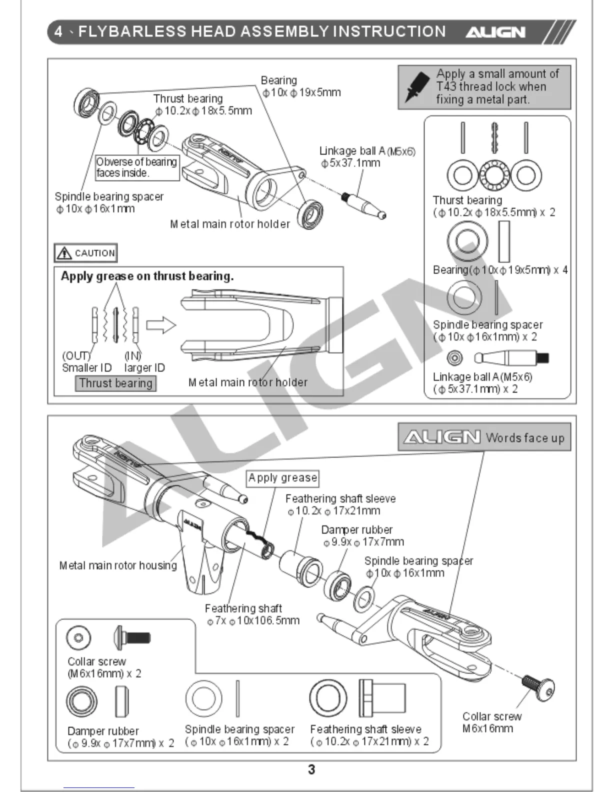 Align TREX 700 - Flybarless Head Assembly Instruction