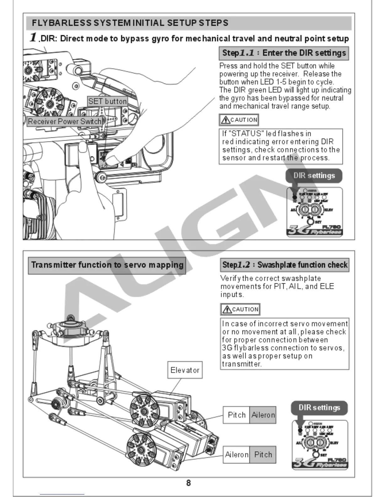 Align TREX 700 - Enter DIR Settings Procedure; Swashplate Functionality Verification