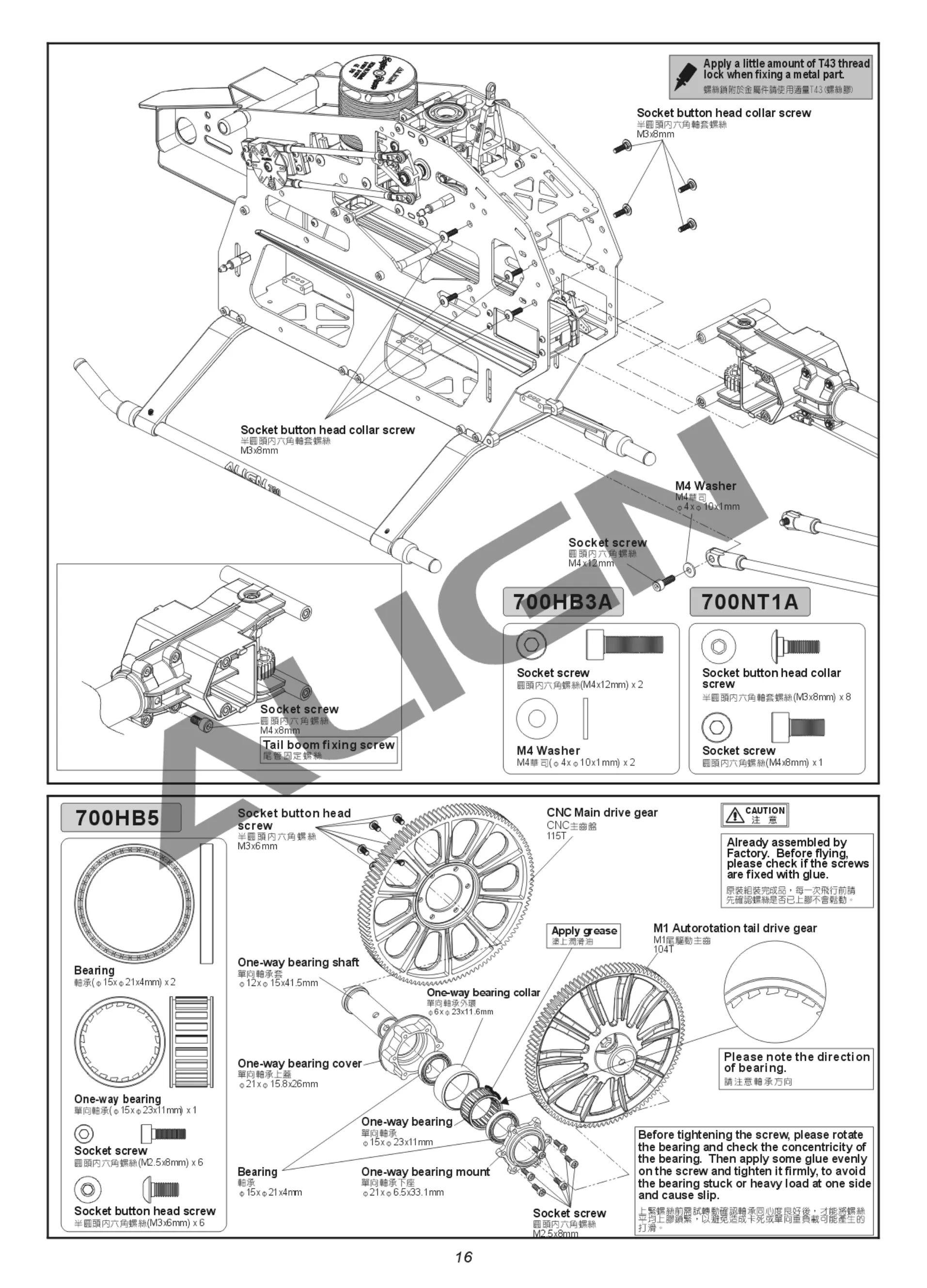 Align TREX 700E - Drive Gear and Autorotation Assembly