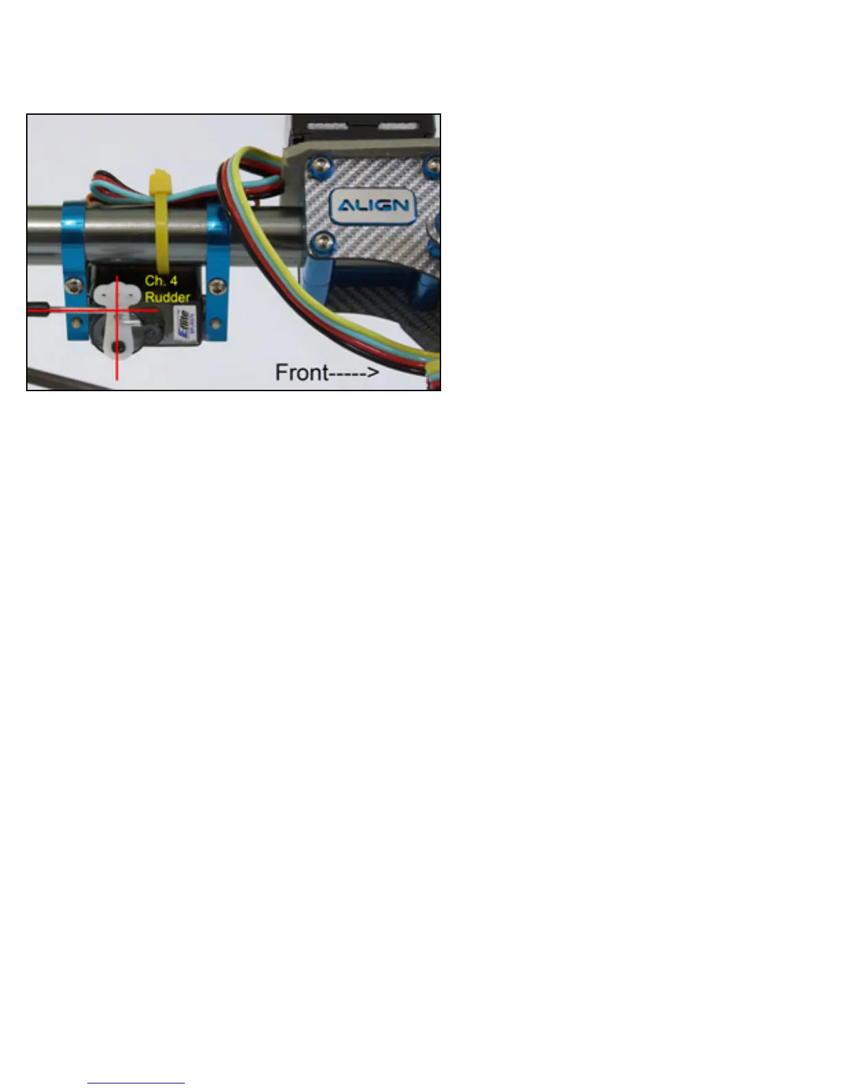 ■ Move the left stick (rudder) to the left. The Ch. 4 servo arm should move towards the tail of