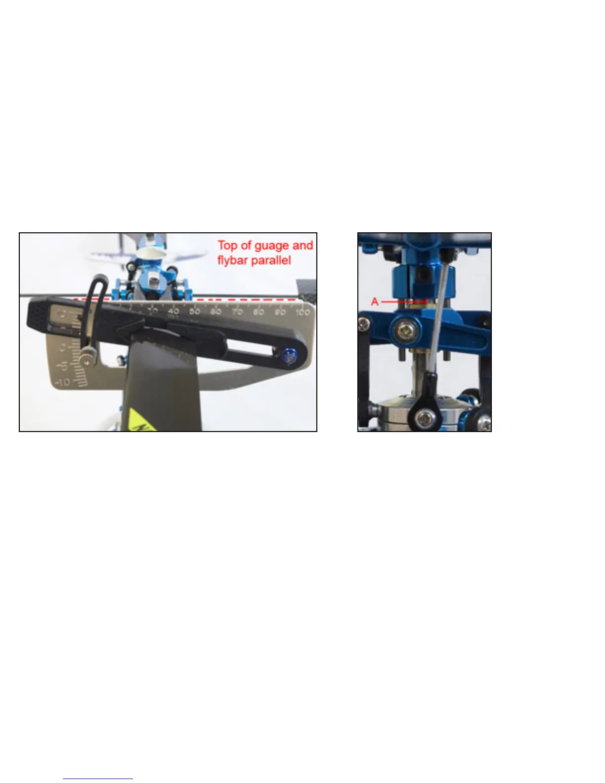 ❍ The top of the guage and flybar should be parallel or very close. (figure K below).