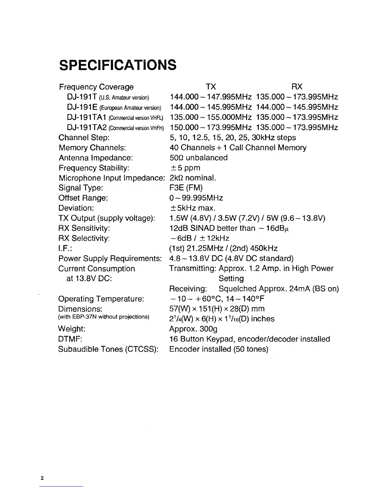 DJ-191TA2 (Commercial version VHFH)