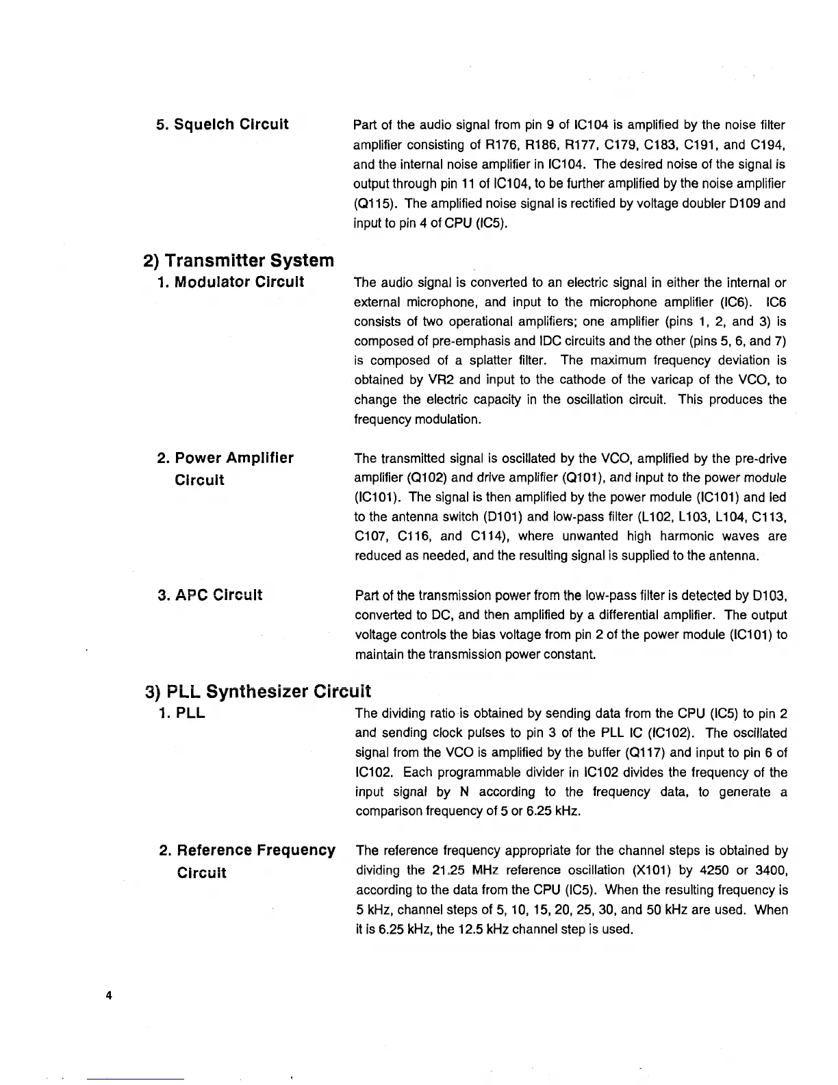 5. Squelch Circuit Part of the audio signal from pin 9 of IC104 is amplified by the noise filter