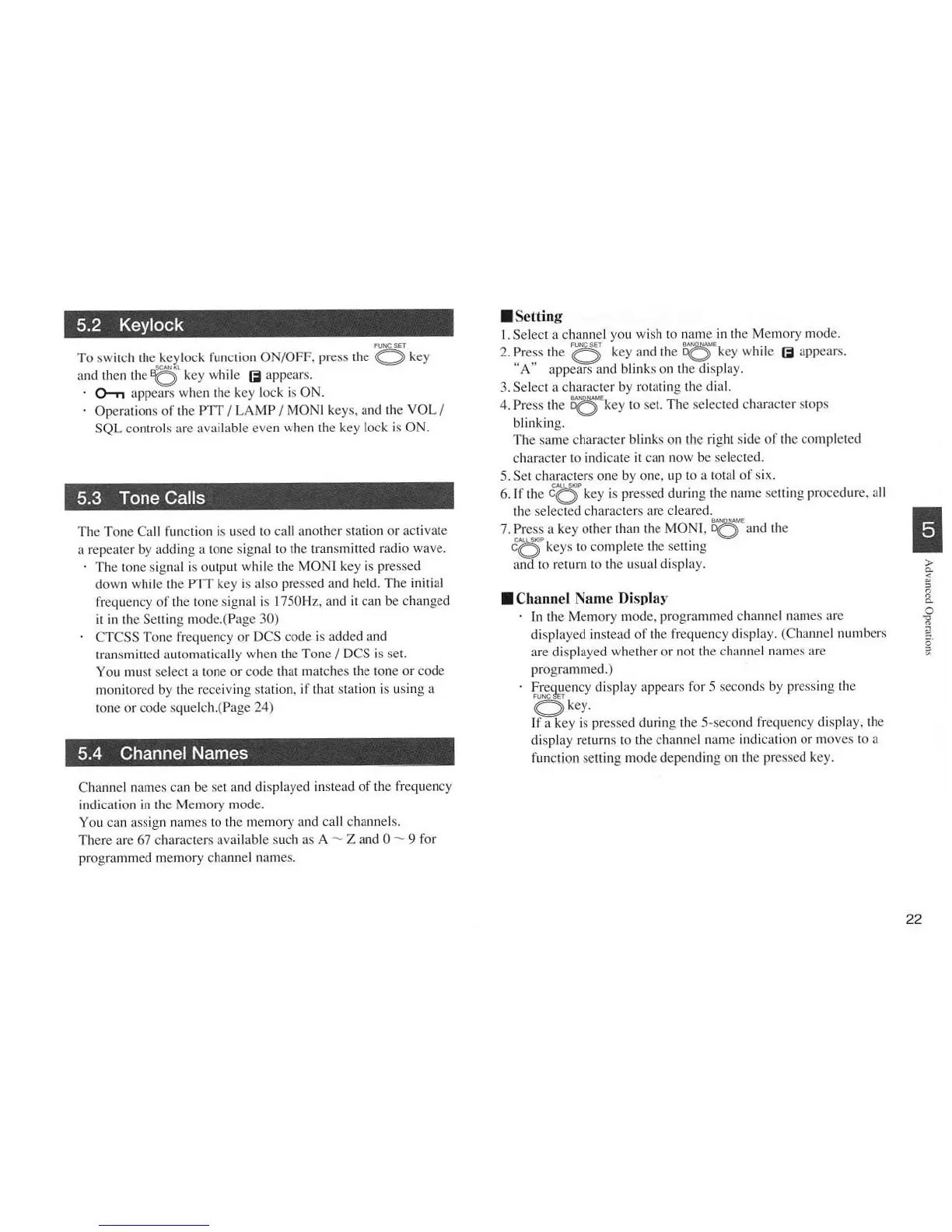 Alinco DJ-596T - Keylock; Tone Calls; Channel Names; Setting