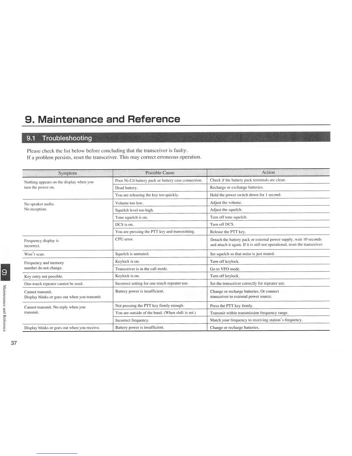 Alinco DJ-596T - Maintenance and Reference; Troubleshooting Common Issues