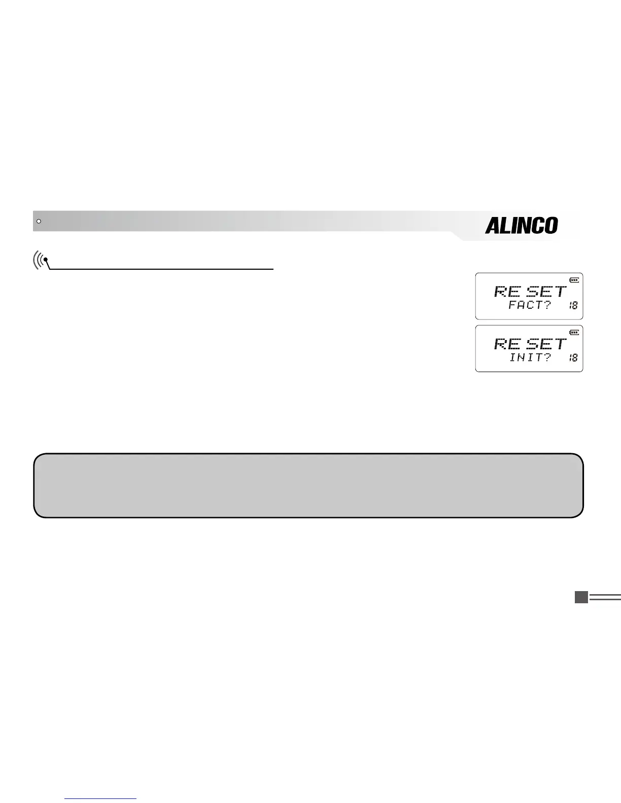 Resume Set mode setting parameters to default. Frequency, signaling tones and function