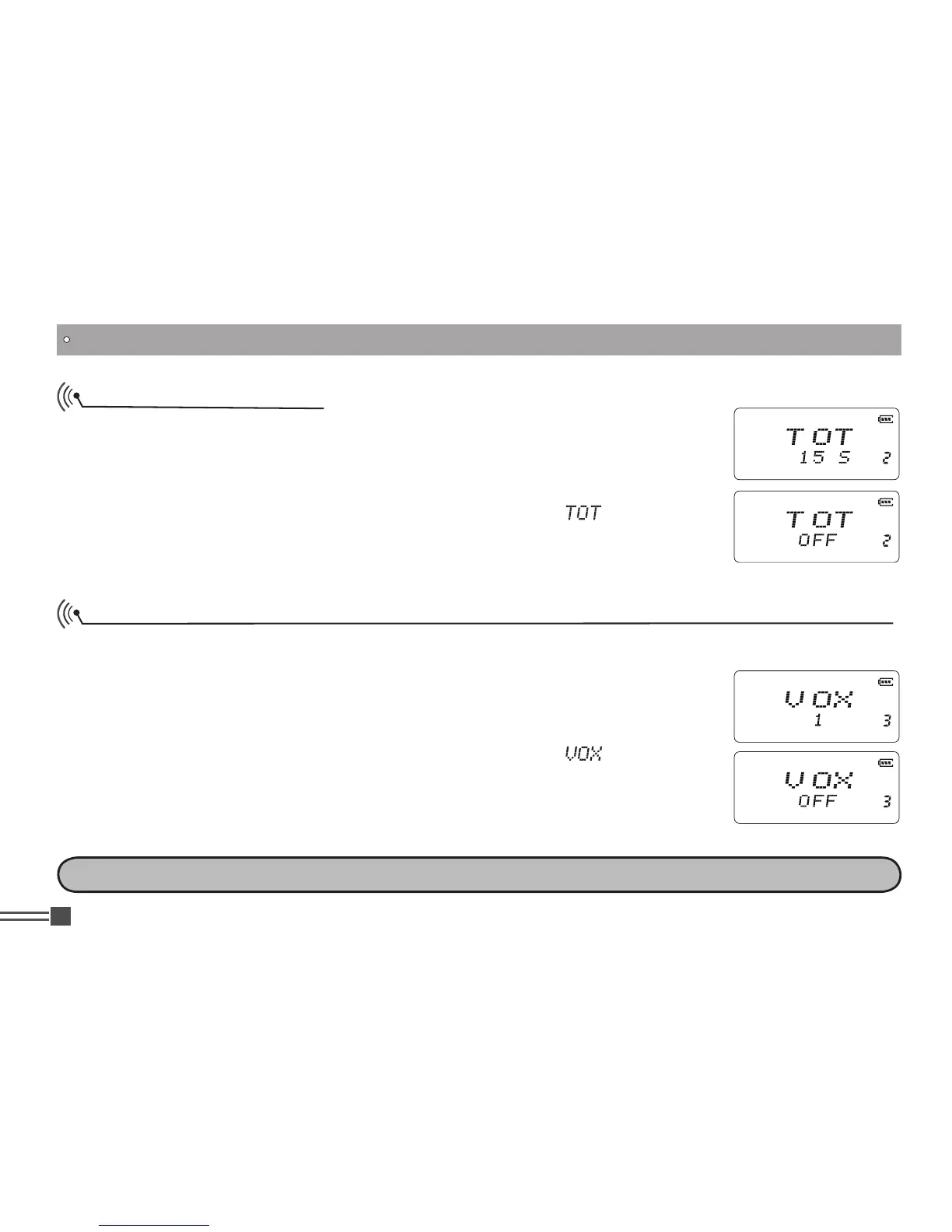 NOTE: VOX is not usable in noisy areas as it may start transmitting by the back noise.