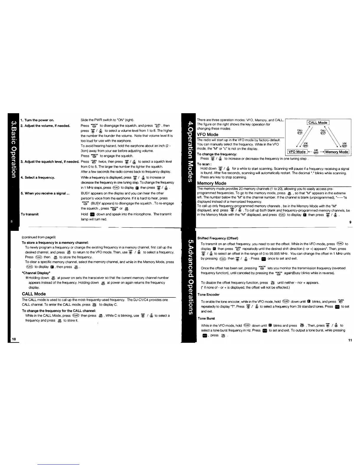 Alinco DJ-C1 - 3. Basic Operation; Power On, Volume, and Squelch Adjustment; Frequency Selection and Reception; Transmitting Procedure
