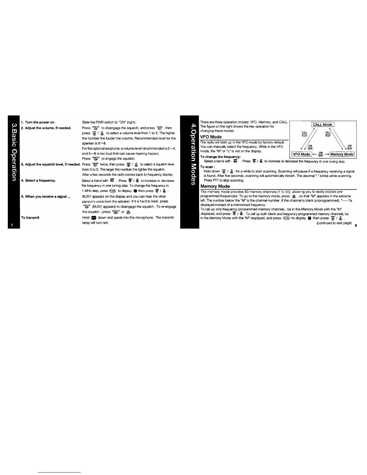 Alinco DJ-C5 - Basic Operation; Power On;Off, Volume, and Squelch; Frequency Selection and Transmission; Operation Modes