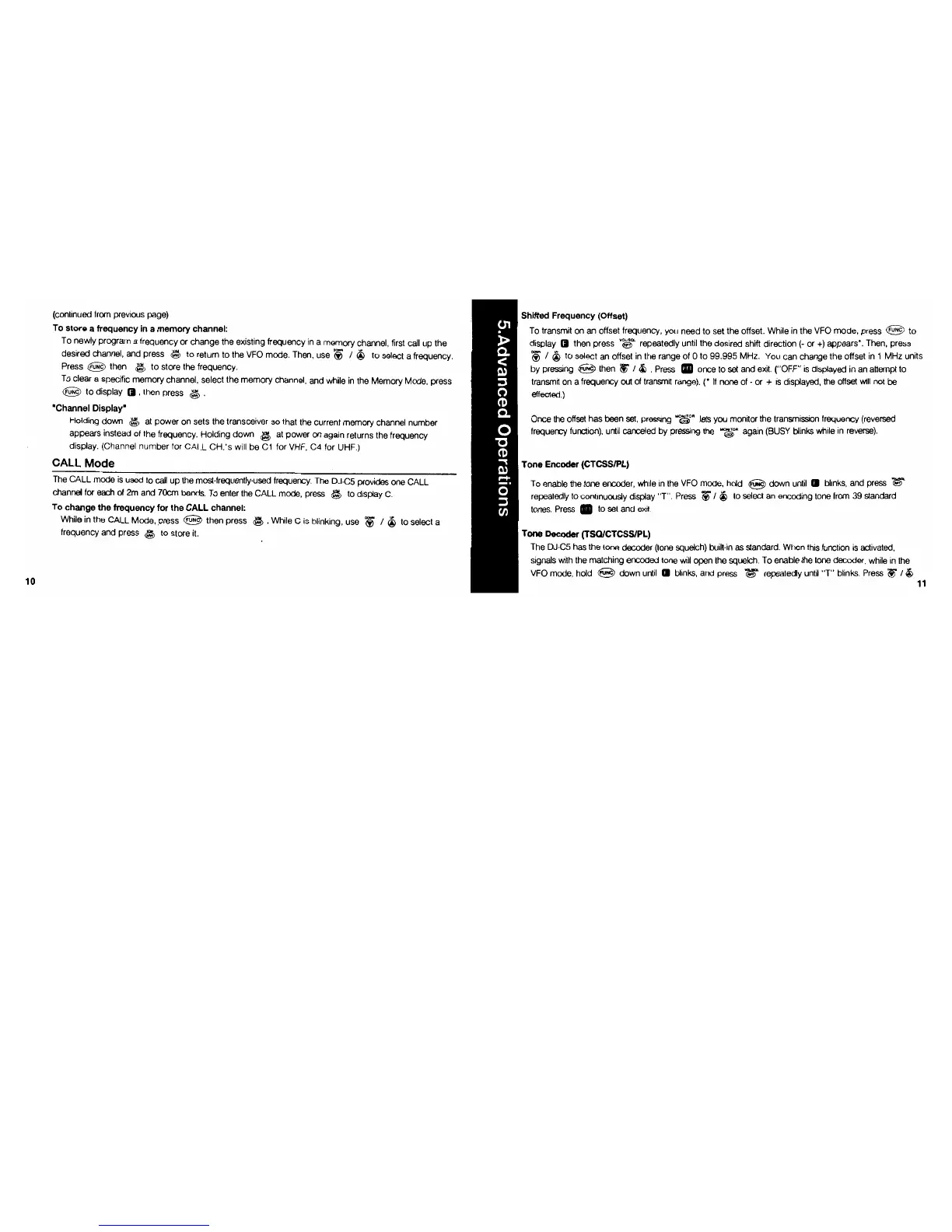 Alinco DJ-C5 - Advanced Operations; Shifted Frequency (Offset); Tone Encoder and Decoder Functions
