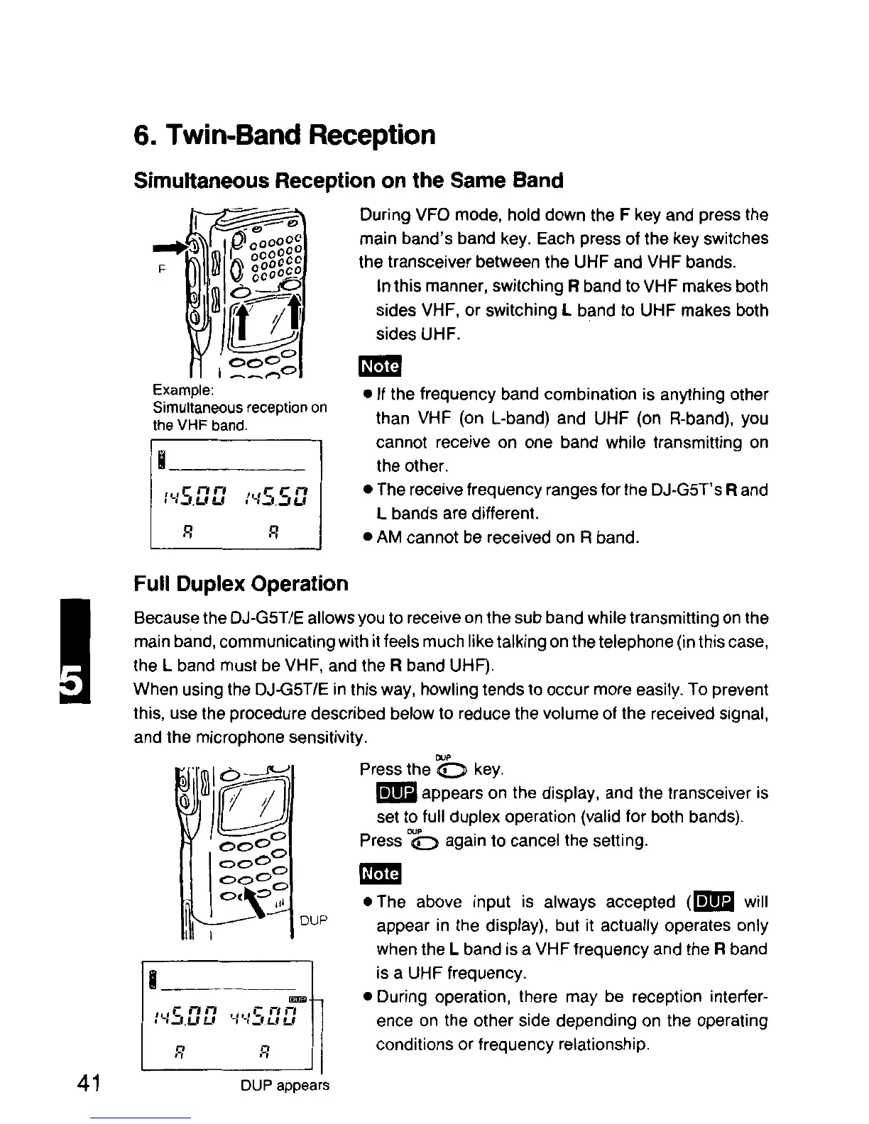 Alinco DJ-G5T/E - Twin-Band Reception; Simultaneous Reception on the same Band; Full Duplex Operation
