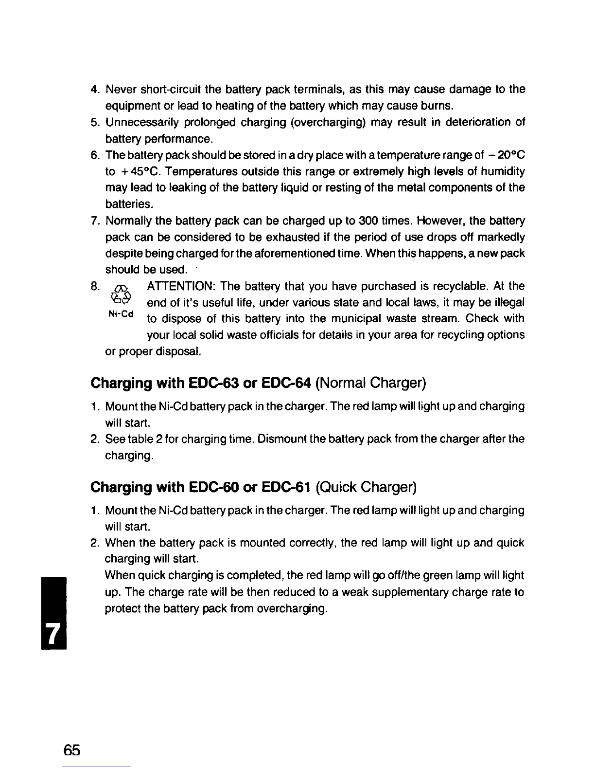 Alinco DJ-G5T/E - Charging with EDC-63 or EDC-64; Charging with EDC-60 or EDC-61