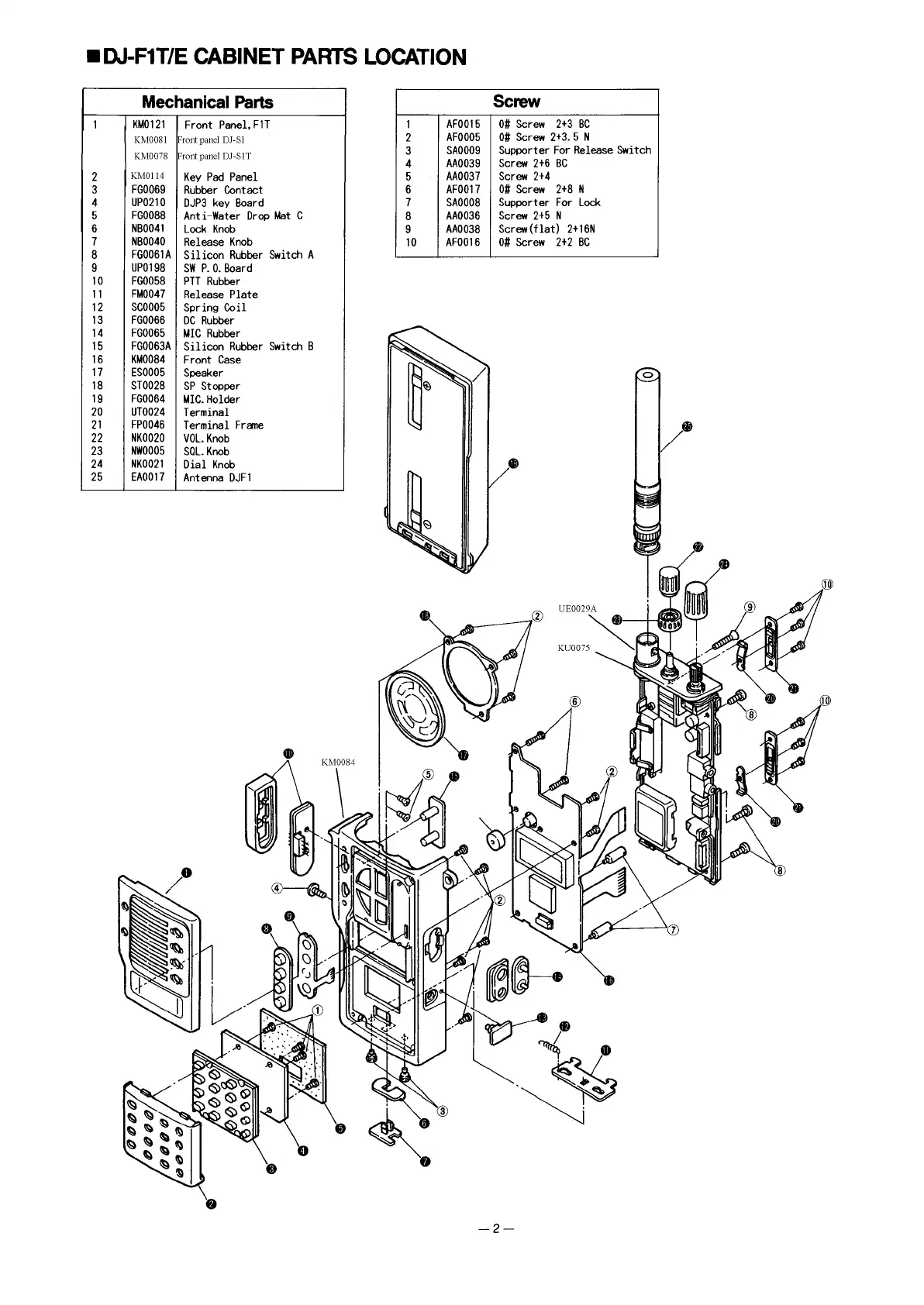 Alinco DJ-S1E - DJ-F1 T;E Cabinet Parts Location; Mechanical Parts List; Screw List