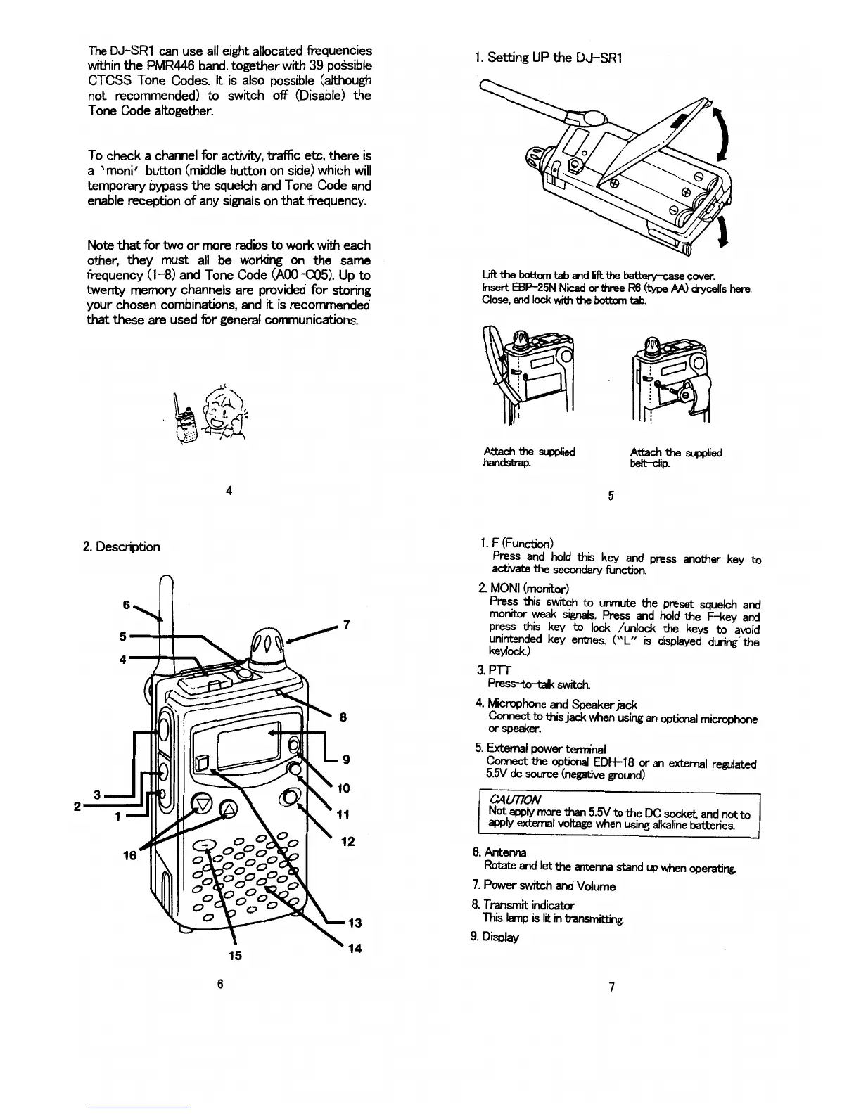 Alinco DJ-SR1 - DJ-SR1 Setup and Components; Setting Up the DJ-SR1; Radio Description and Controls