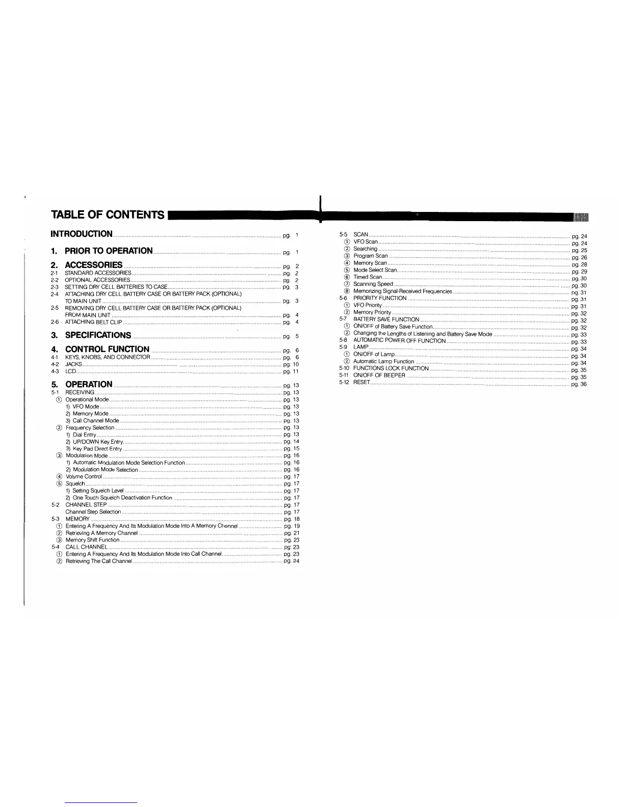 Alinco DJ-X1 - Table of Contents
