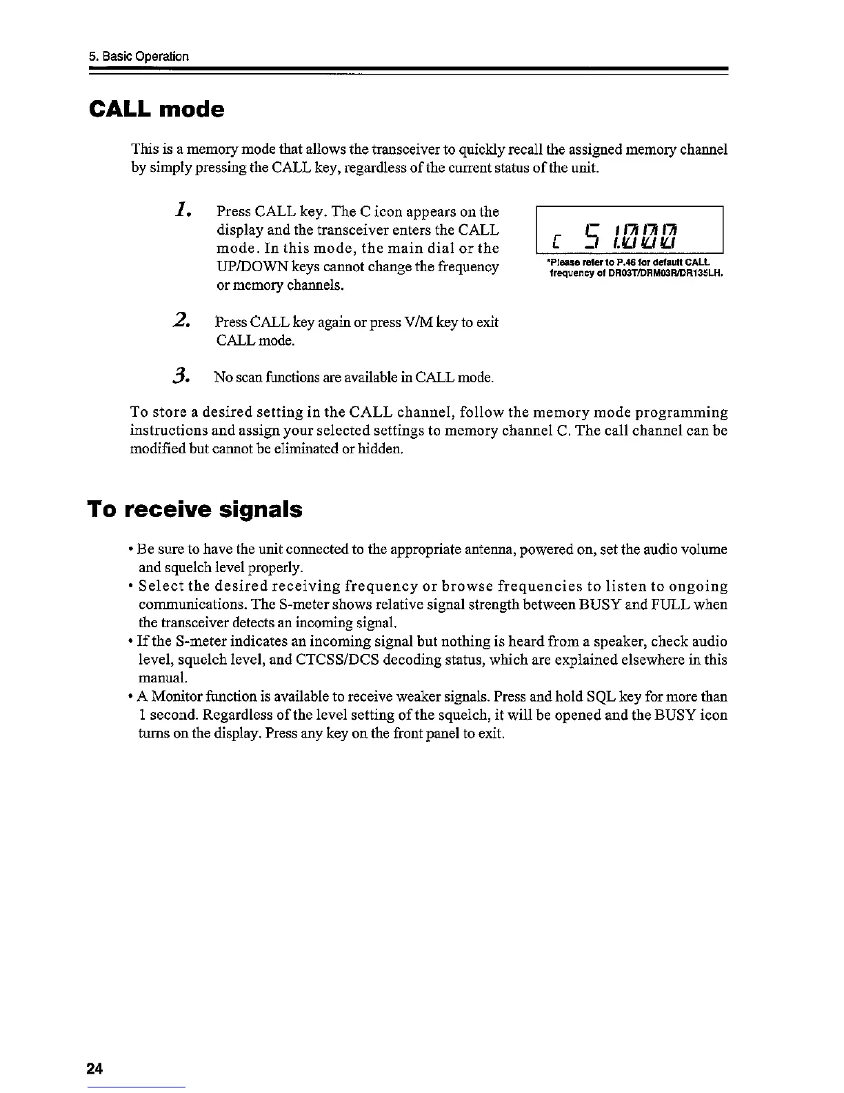 Alinco DR-03T - Basic Operations - Call Mode and Signal Reception; Call Mode Functionality; Receiving Incoming Signals