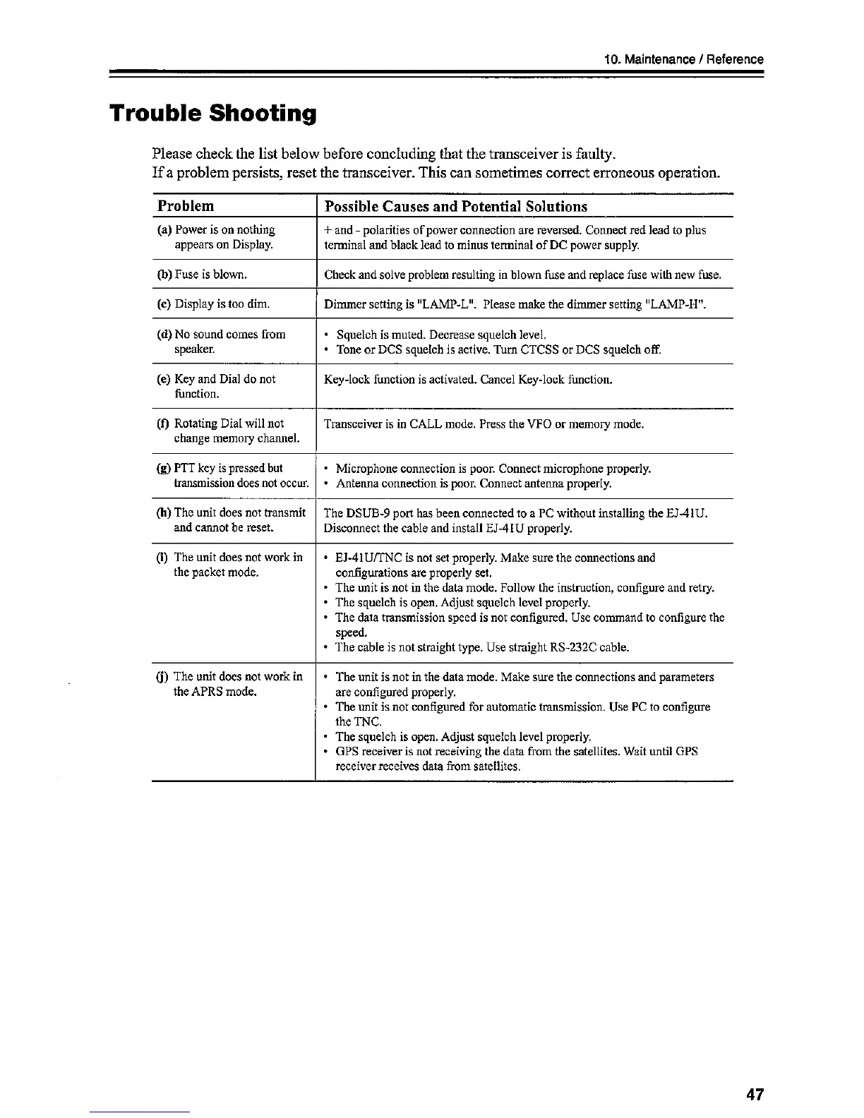 Alinco DR-03T - Maintenance and Reference Information; Transceiver Reset Procedure