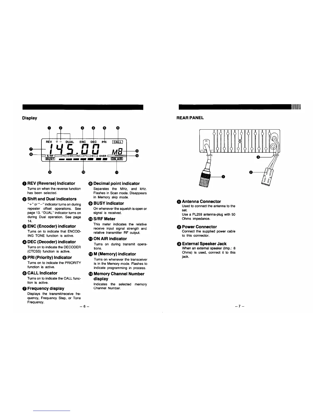 Alinco DR-110T - Display and Rear Panel Features; Display Indicators Explained; Rear Panel Connections