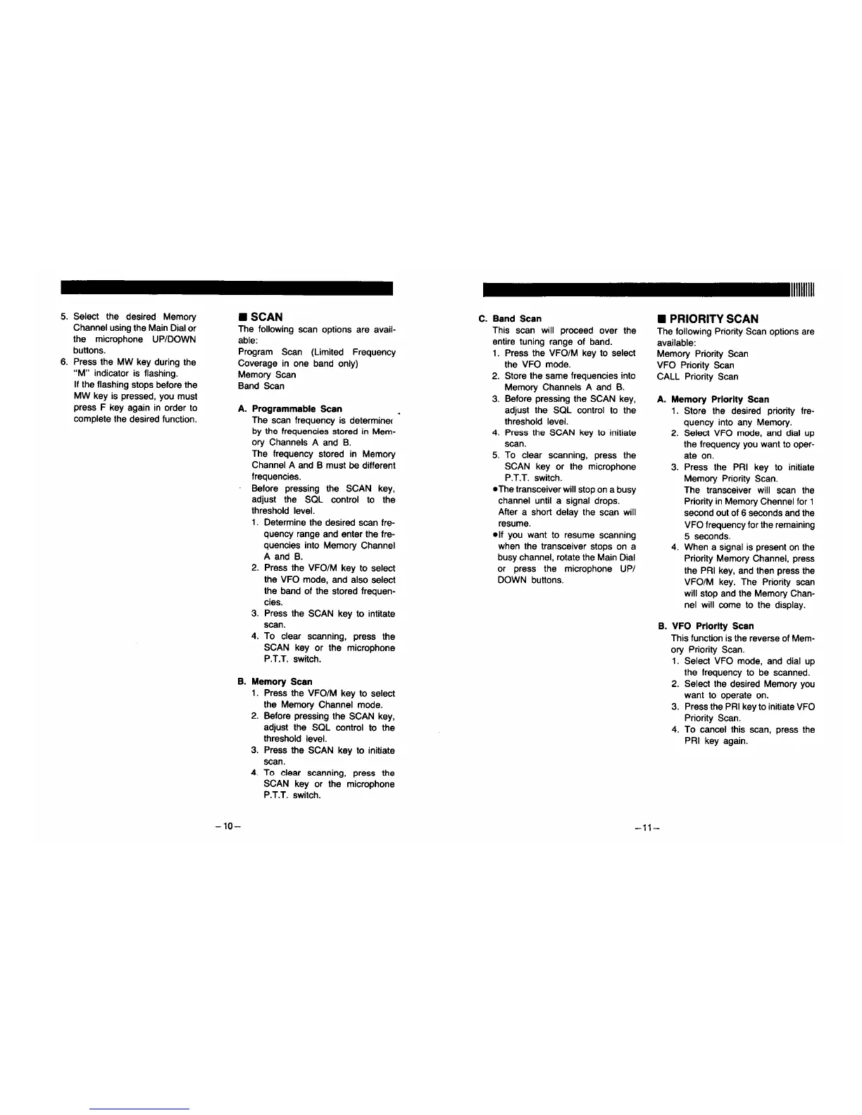 Alinco DR-110T - Scanning Operations; Programmable, Memory, and Band Scan; Priority Scan Operations; Memory and VFO Priority Scan