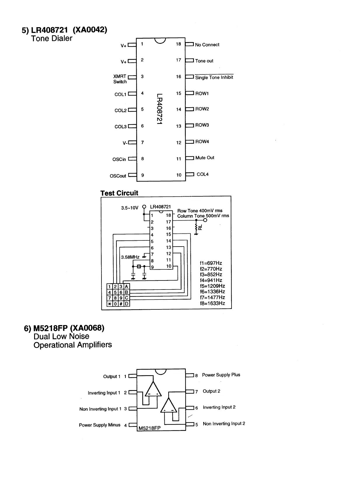 Alinco DR-130 - LR408721 Tone Dialer Data; M5218 FP Dual Operational Amplifiers Data