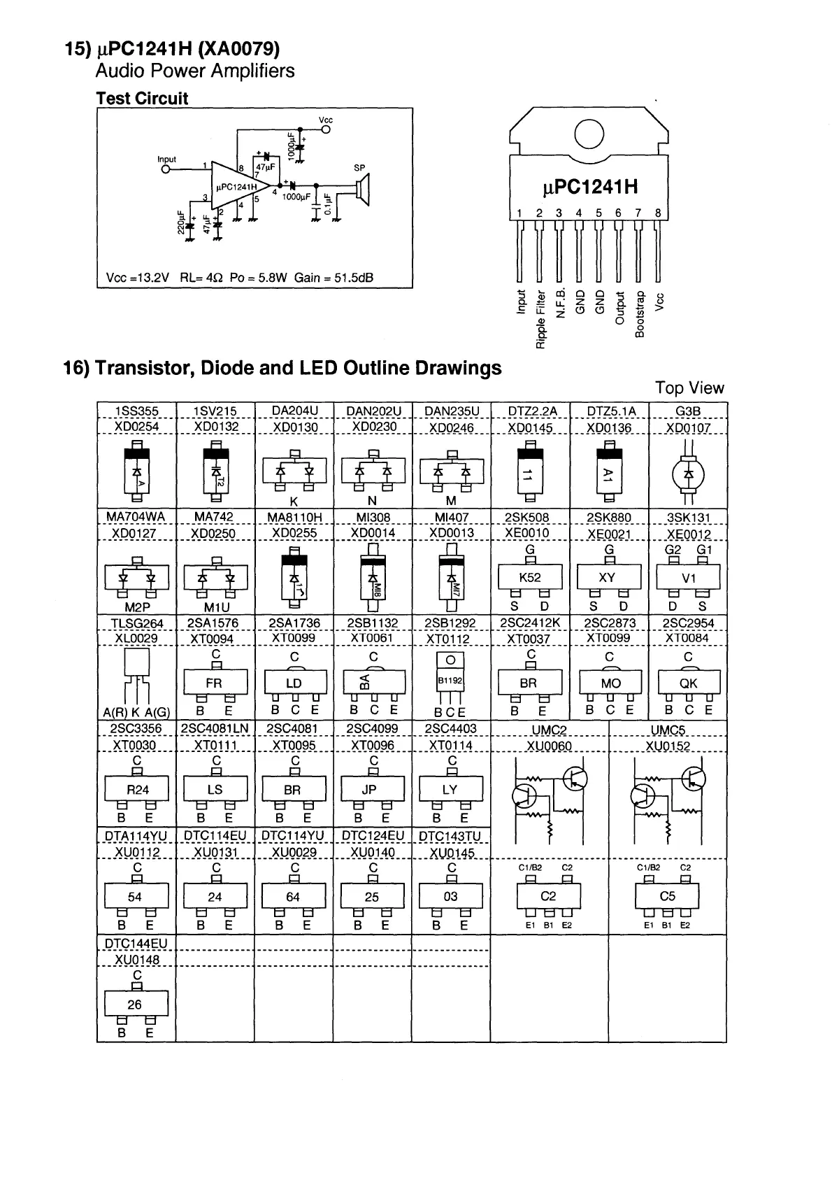 Alinco DR-130 - μPC1241 H Audio Power Amplifiers Data; Component Outline Drawings