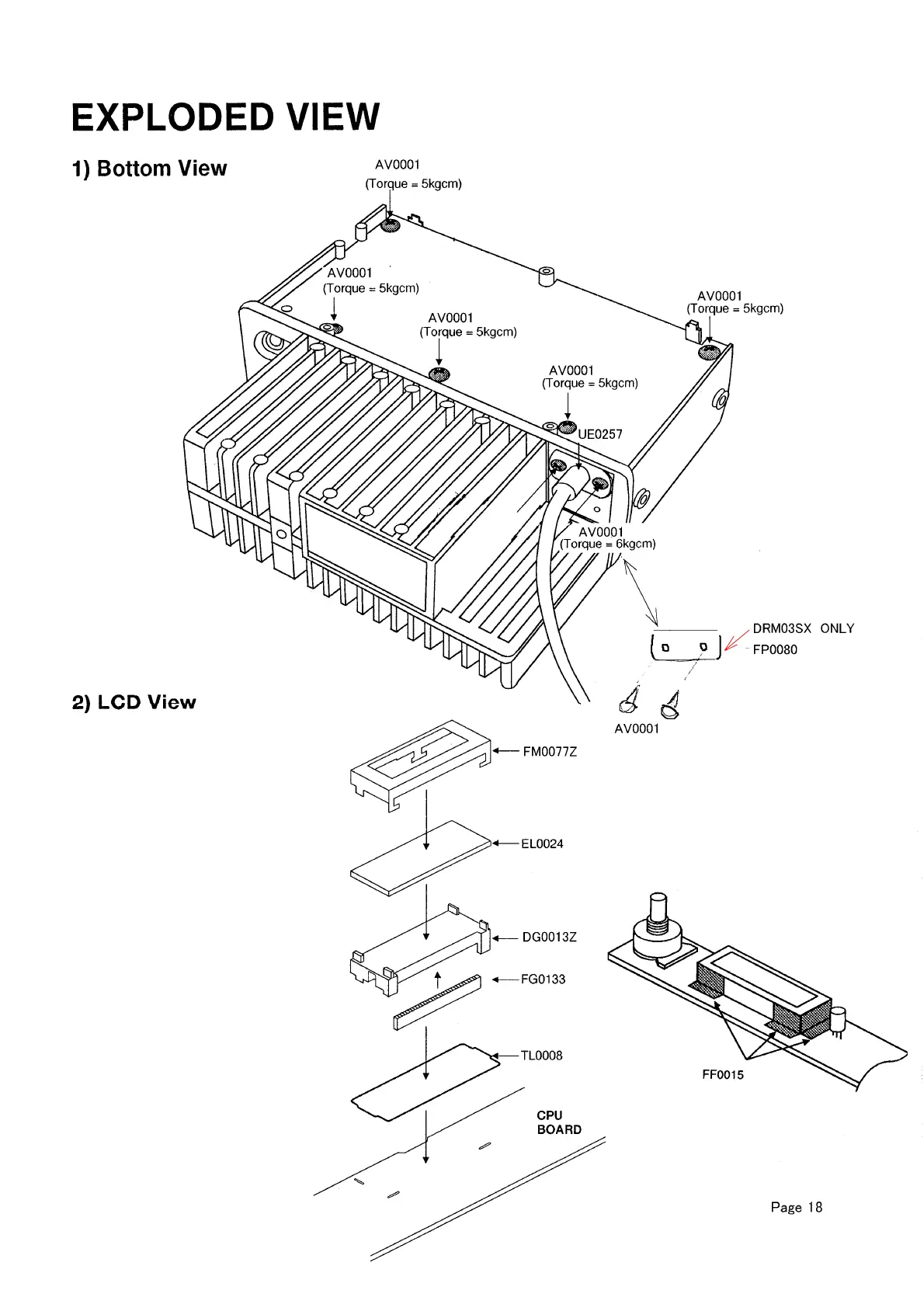 Alinco DR-130 - EXPLODED VIEW; Bottom View Assembly; LCD Module Assembly