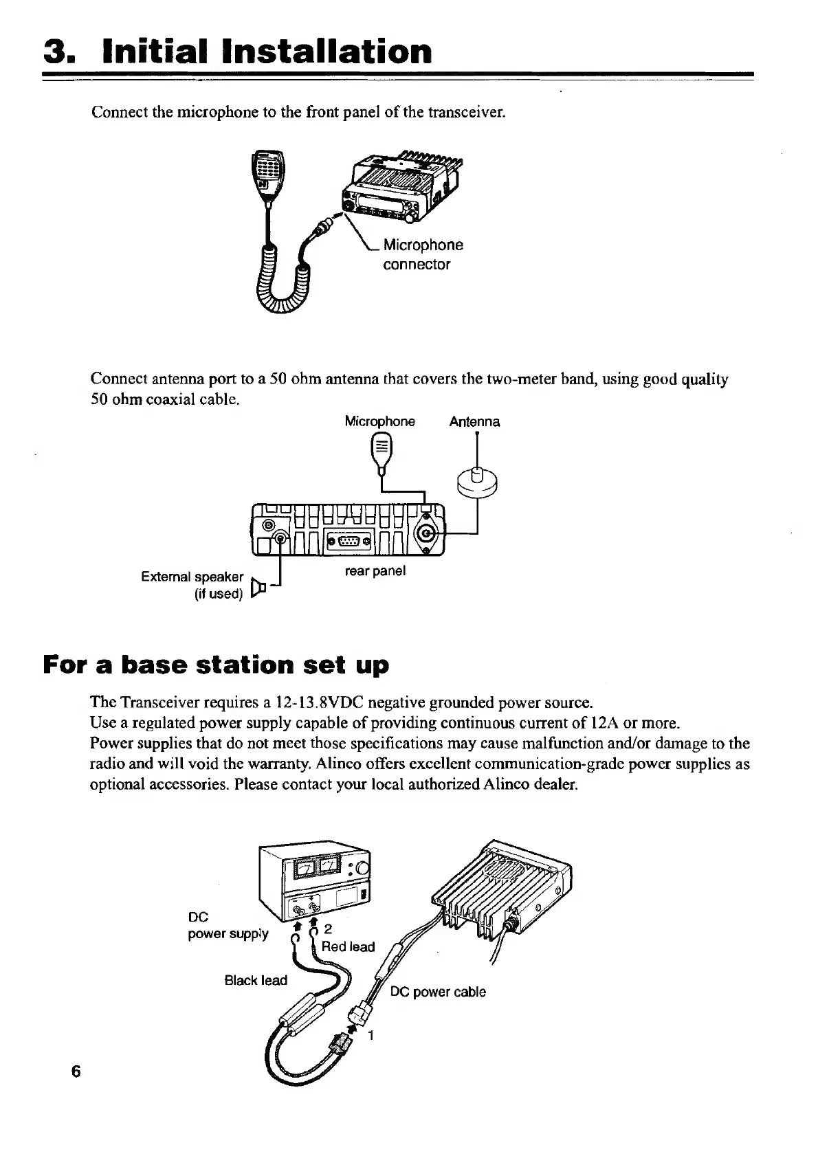 Alinco DR-135T - Initial Installation; Base Station Setup Power
