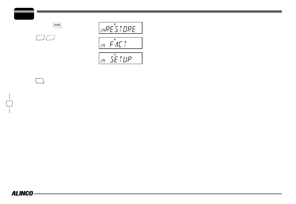 menu, LCD displays "RESTORE".