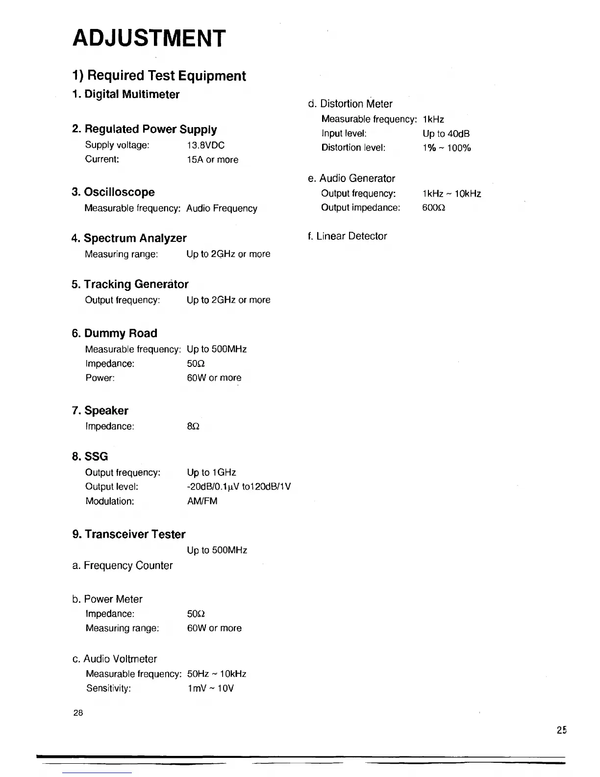 1) Required Test Equipment