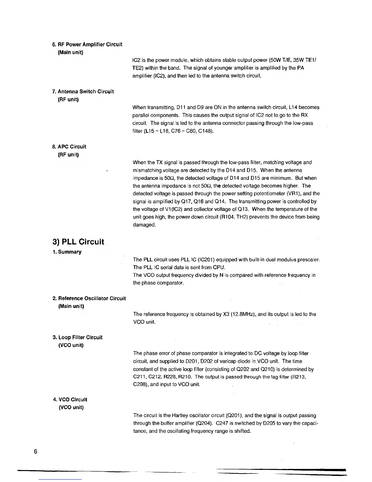 The PLL circuit uses PLL IC (IC201) equipped with built-in dual modulus prescaler.