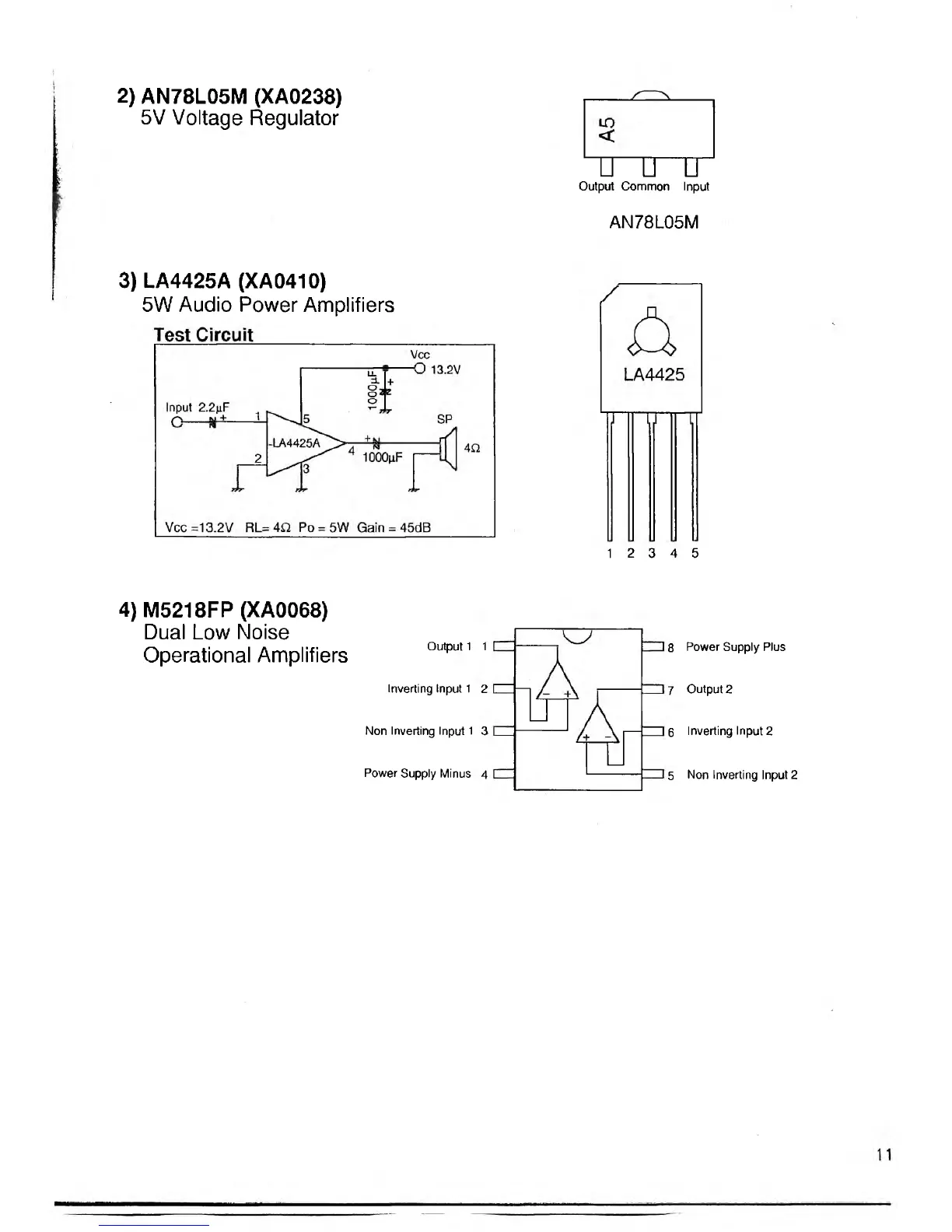 Alinco DR-140TE2 - AN78 L05 M 5 V Voltage Regulator Data; LA4425 A 5 W Audio Power Amplifier Data; M5218 FP Dual Low Noise Op-Amp Data