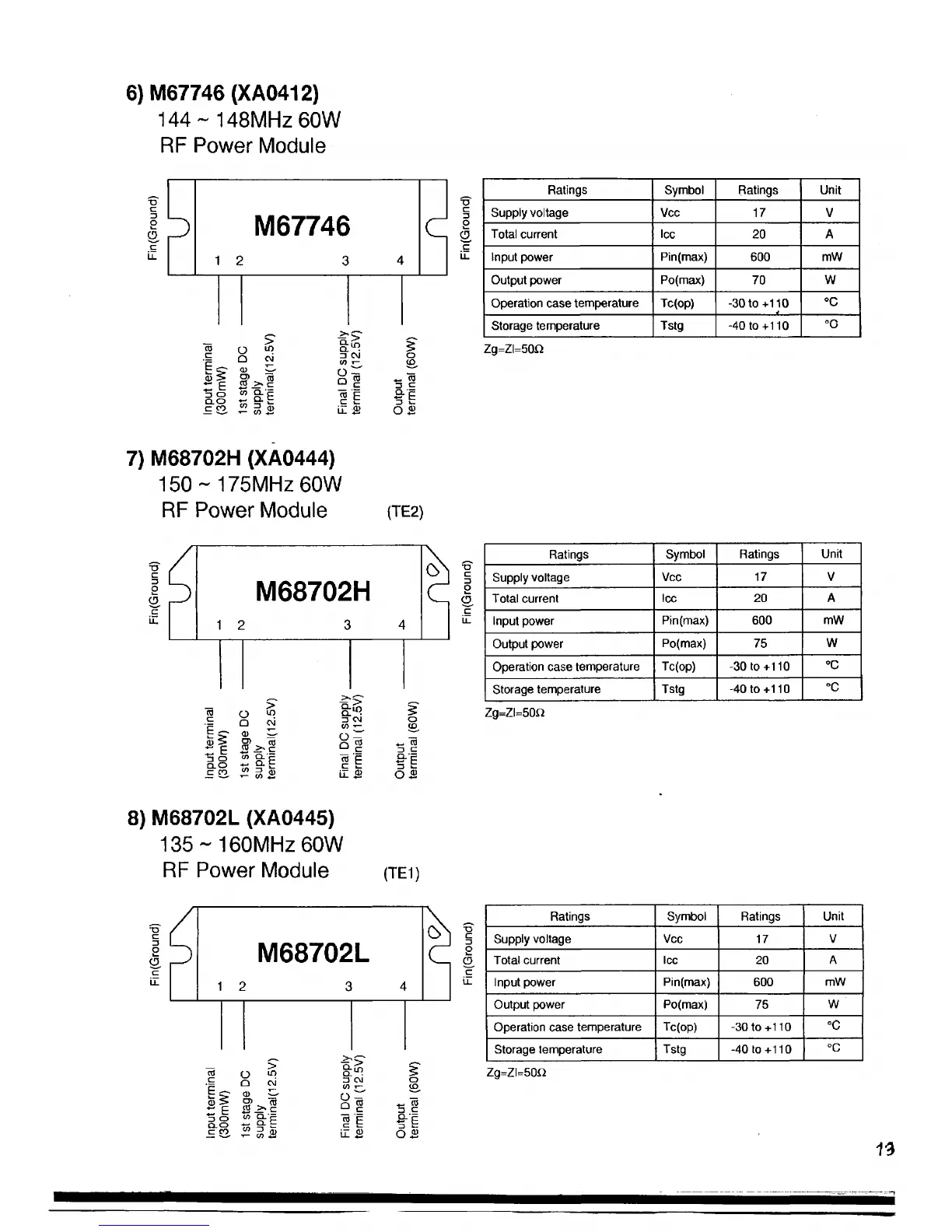 Alinco DR-140TE2 - M67746 RF Power Module Data; M68702 H RF Power Module Data; M68702 L RF Power Module Data