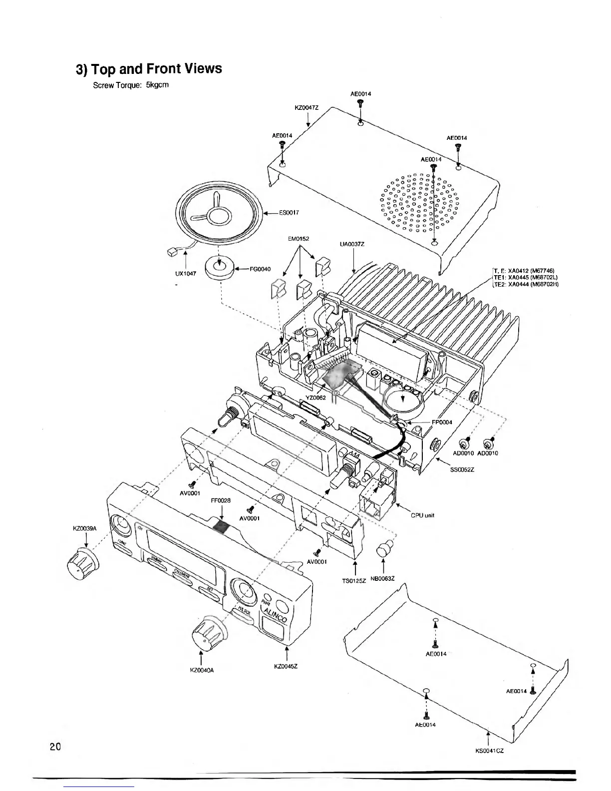 Alinco DR-140TE2 - Top and Front Views Exploded