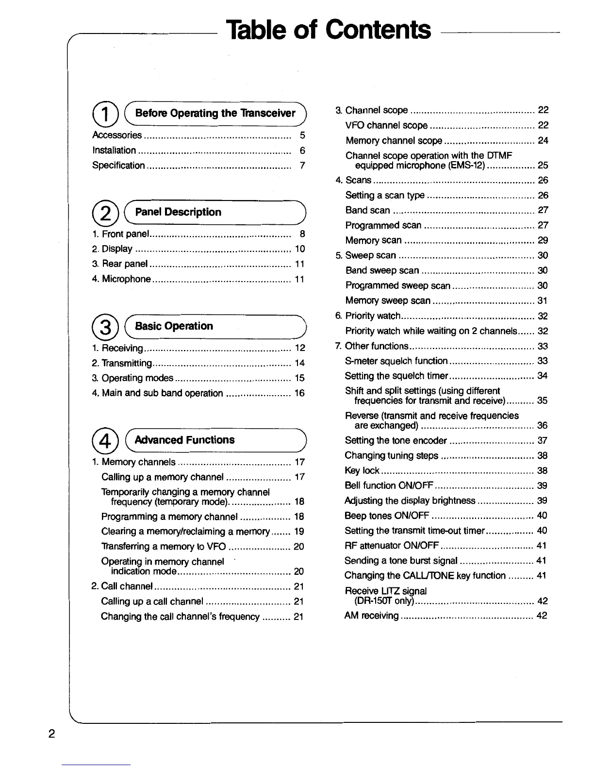 Alinco DR-150 T - Table of Contents