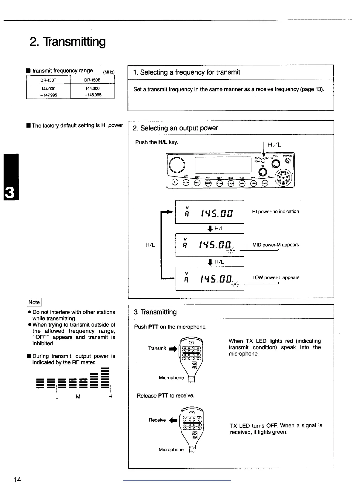 Alinco DR-150 - Basic Operation: Transmitting; Transmit Frequency and Power Settings; Transmitting Procedure