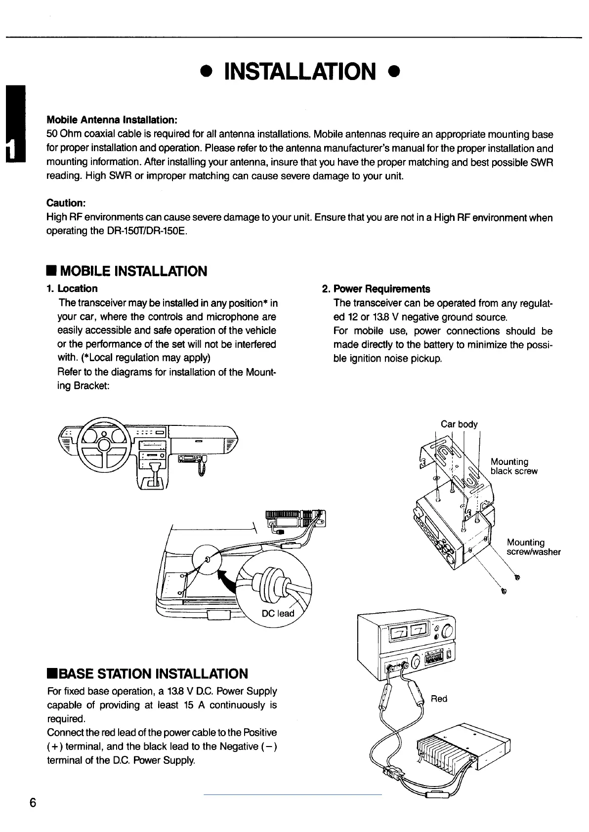 Alinco DR-150 - Installation Guide; Mobile Installation; Base Station Installation