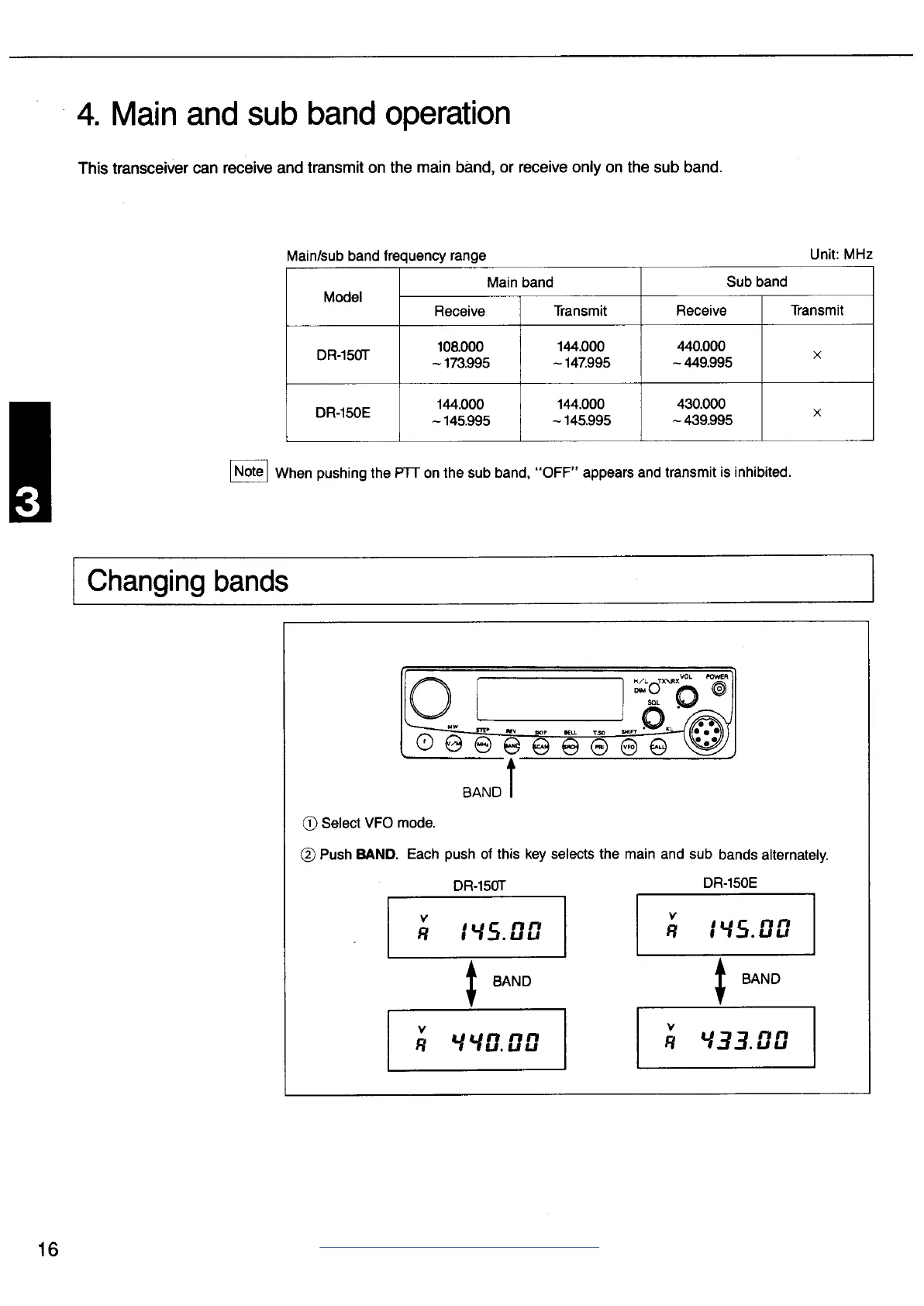 Alinco DR-150T - Main and Sub Band Operation