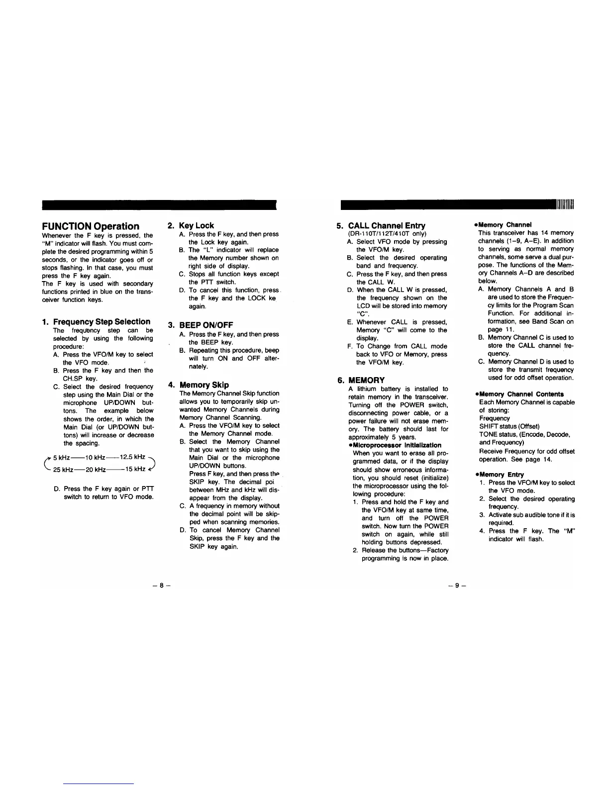 Alinco DR-410E - Function Operation