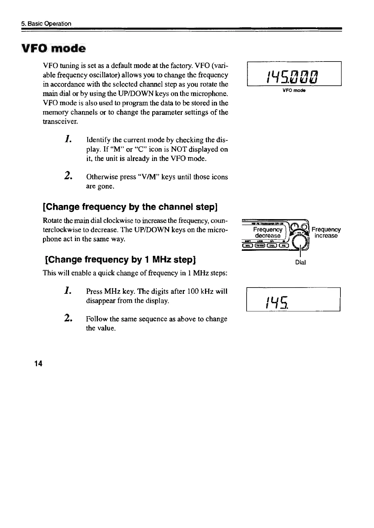Alinco DR-435T - VFO Mode Operation; Frequency Change by Step; Frequency Change by 1 MHz Step