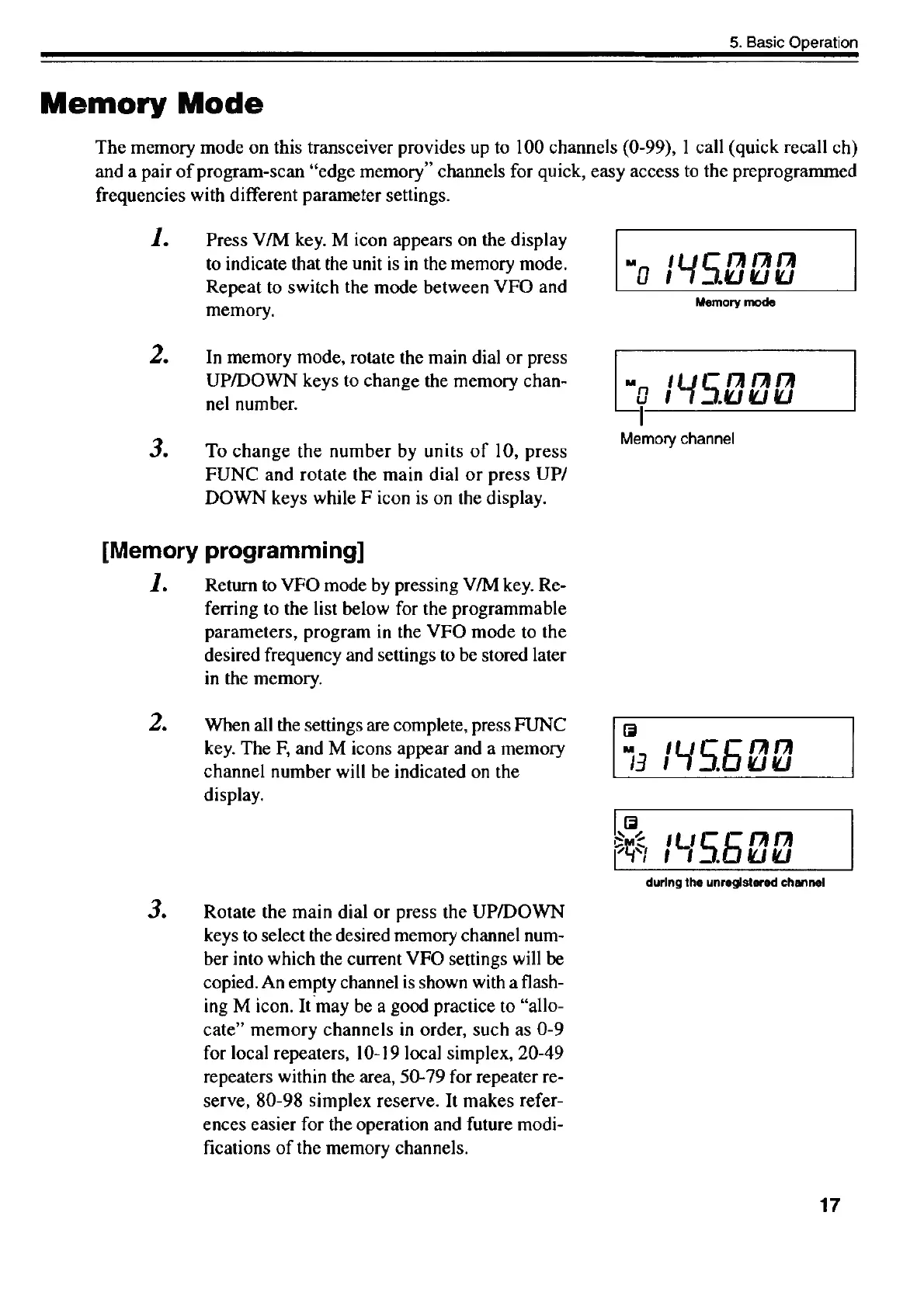 Alinco DR-435T - Memory Mode Usage; Programming Memory Channels