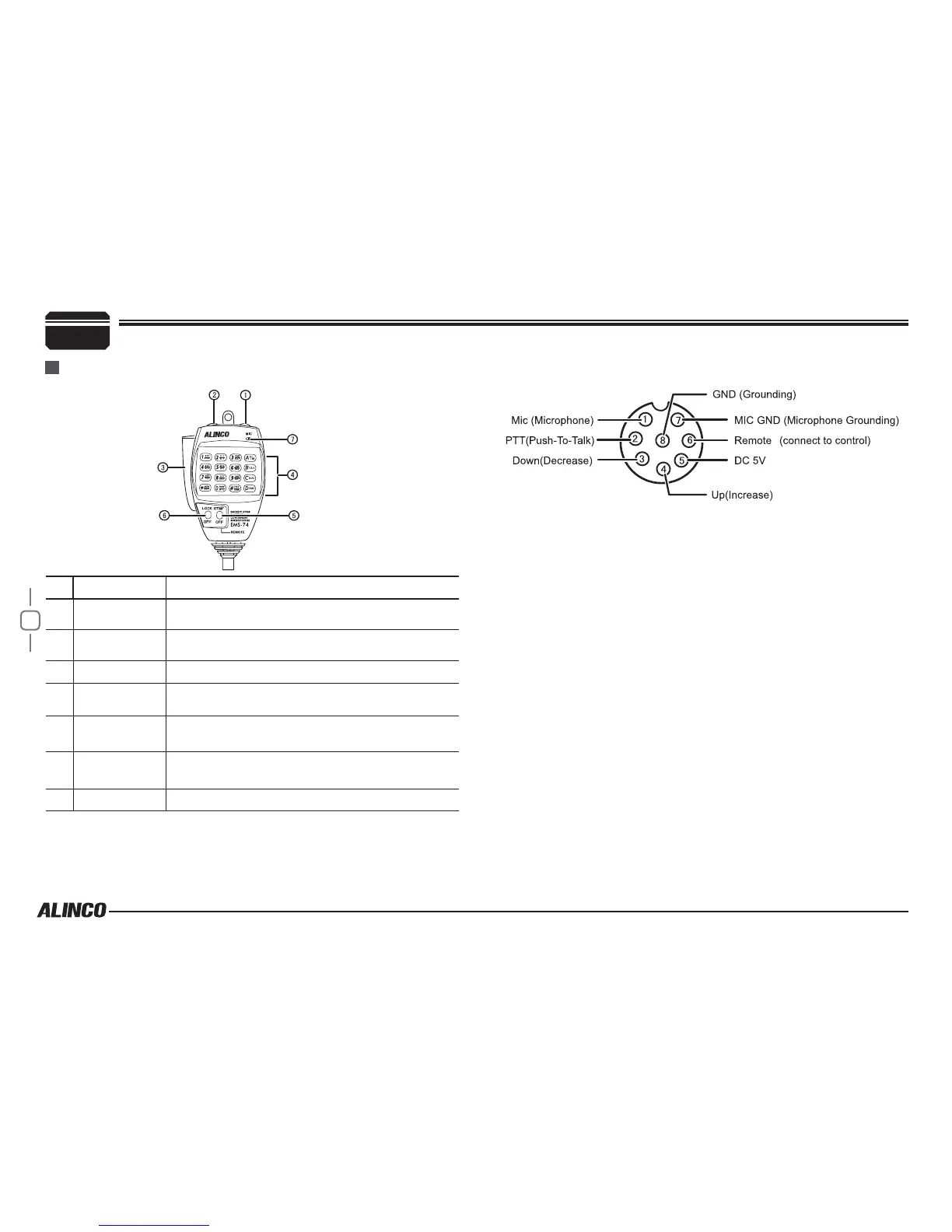 MIC Connector Diagram(in the front view of connector)