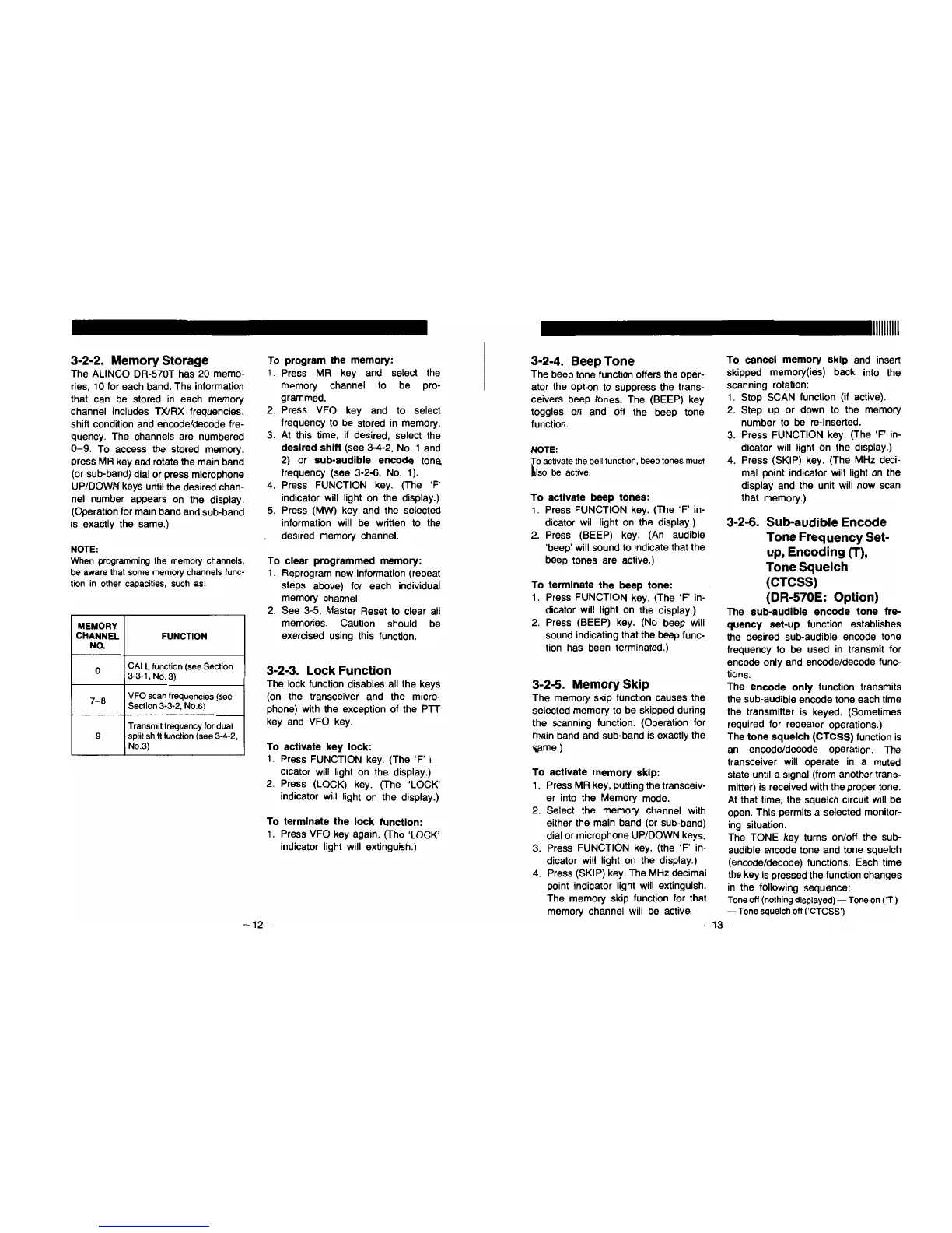 Alinco DR-570T - Core Functions and Features; Frequency Step and Memory Management; Operational Modes and Alerts