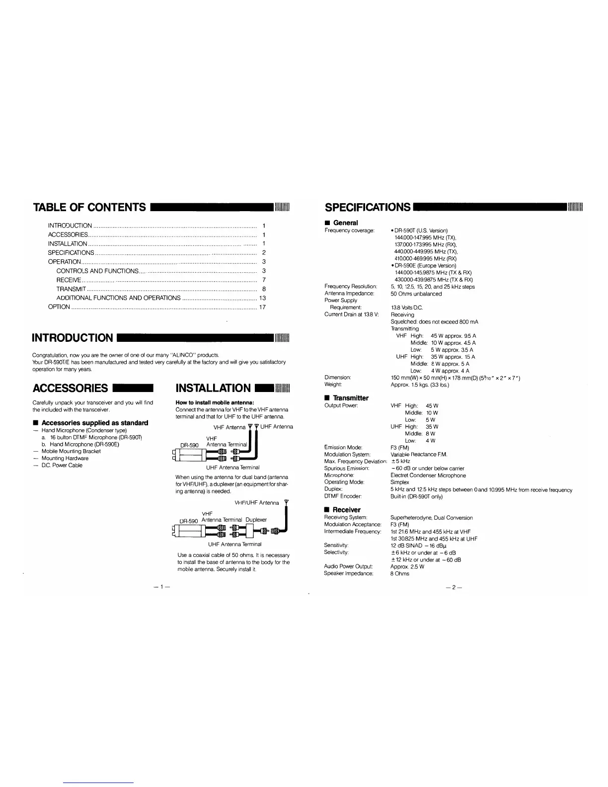 Alinco DR-590T - Specifications; Transmitter Specifications; Receiver Specifications