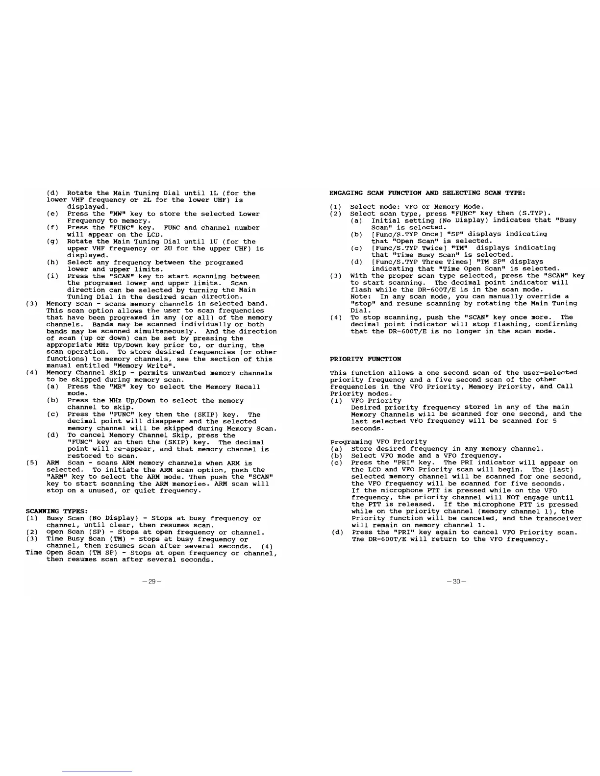 Alinco DR-600T - Scanning and Priority Functions; Memory and ARM Scanning; Priority Function and VFO Priority