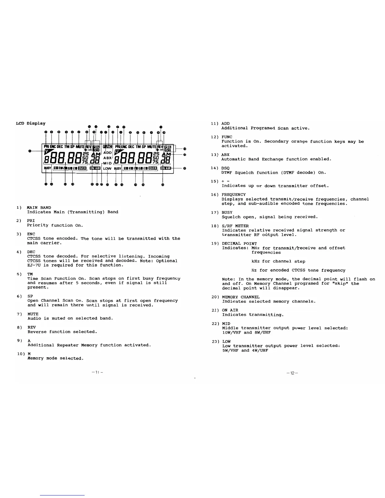 Alinco DR-600T - Operations and Controls; Controls and Functions Overview; LCD Display Indicators