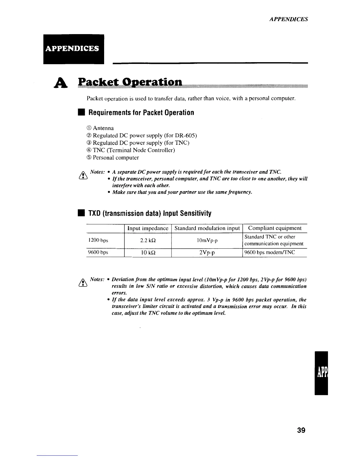 Alinco DR-605E - APPENDICES; A Packet Operation