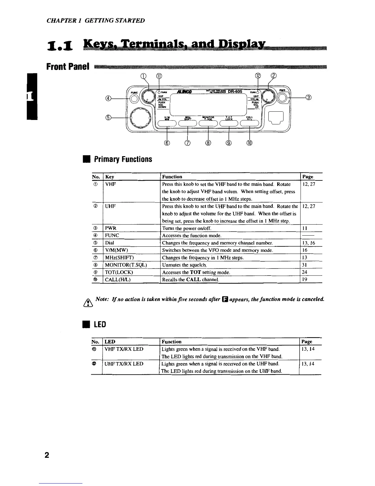 Alinco DR-605E - 1.2 Keys, Terminals, and Display